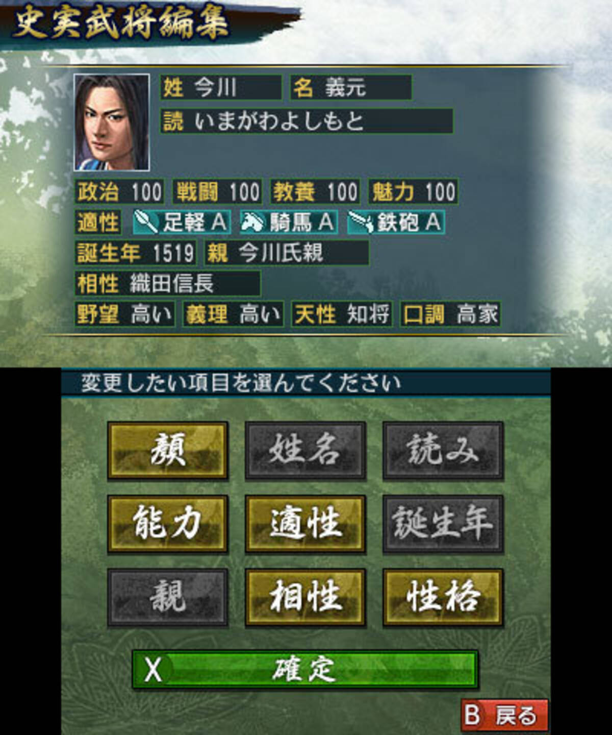 3ds 信長の野望 野望が低い織田信長 史実武将編集 で 顔 能力 性格 を思いのままに設定 13年8月27日 エキサイトニュース